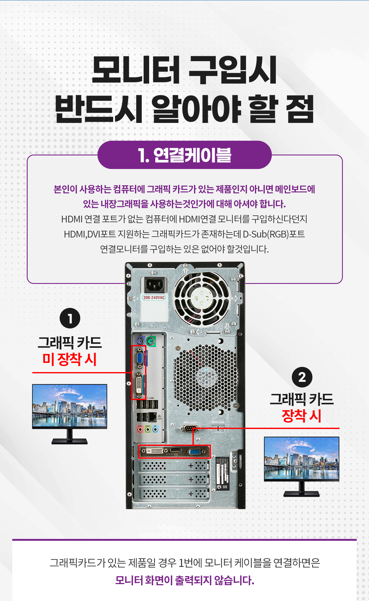 RGB케이블이 기본제공됩니다. 다른 타입을 원하시면 옵션에서 선택하세요