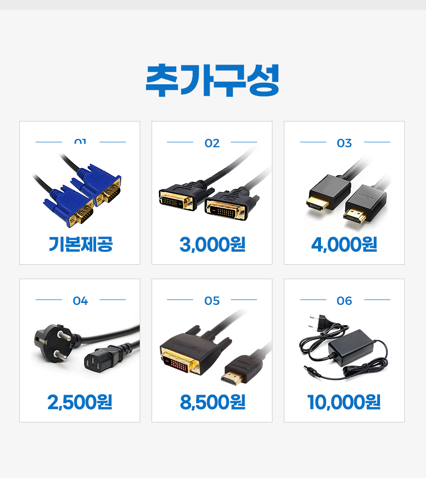 RGB케이블이 기본제공됩니다. 다른 타입을 원하시면 옵션에서 선택하세요
