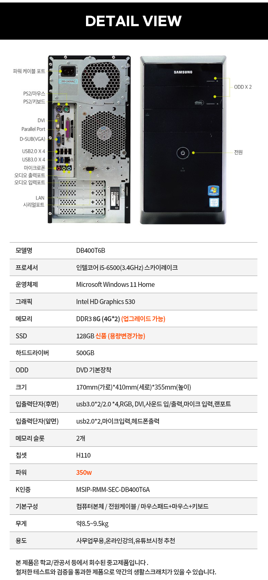 삼성 i5-6500 DB400T6B 중고 데스크탑