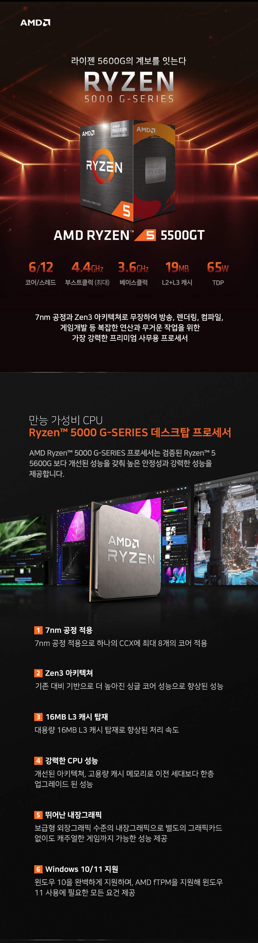신상품 컴윈_R5 5500GT 16GB M.2 Nvme 500GB win11 home