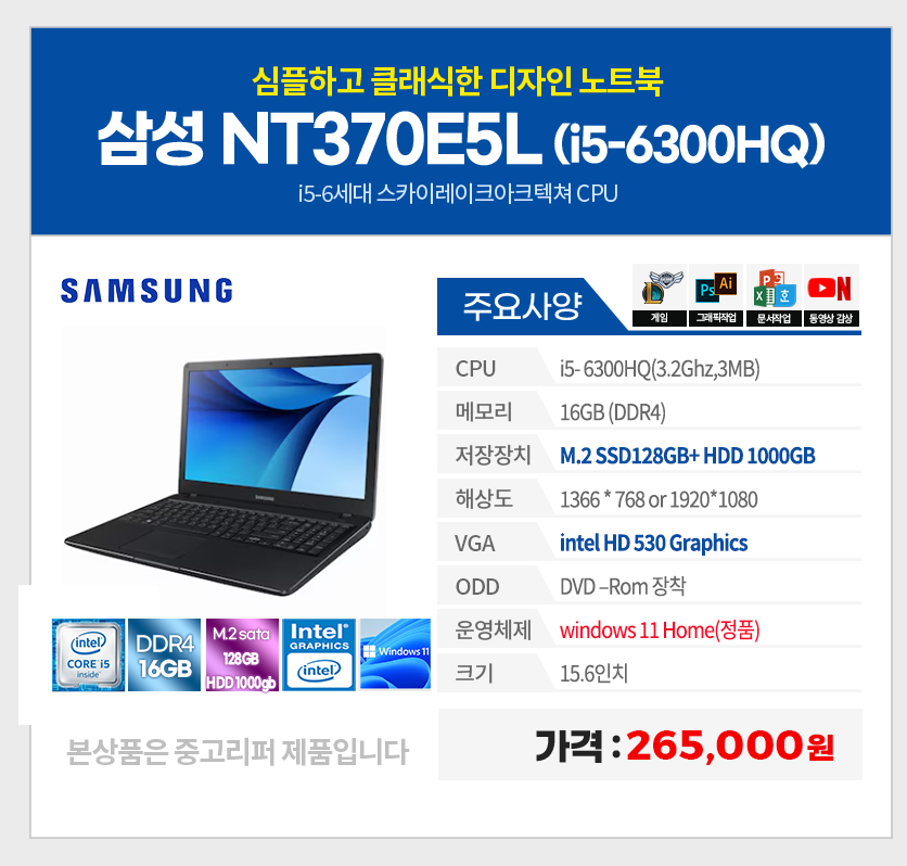 메모리는 16GB 장착입니다. 상세페이지 업데이트하기 전의 용량입니다. 추후 정정하겠습니다