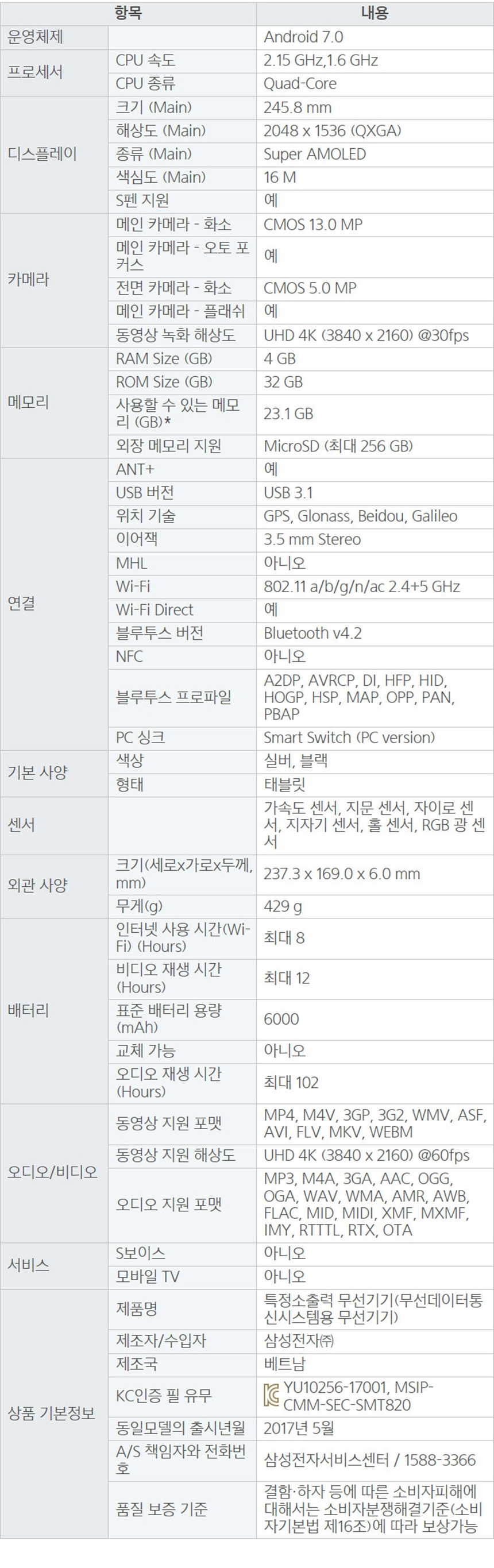 삼성전자 갤럭시탭 S3 SM-T825 32GB