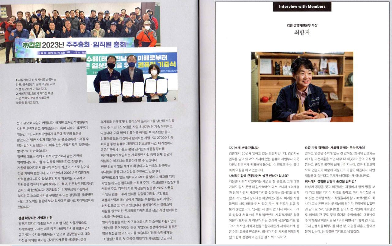 | 주요사업 | 1998년 IMF 경제위기에 실업과 소외계층의 빈곤 극복을 위하여 2003년 안산/시흥 자활공동체 사업이 통합하여 창업한, 전국 최초 광역자활공동체 기업입니다. (자원재활용) |